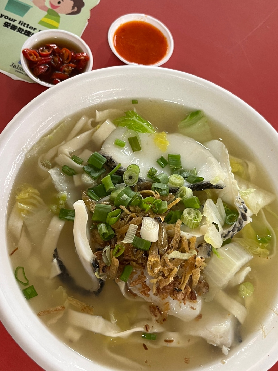 여기는 People's Park Centre에서 멀지 않은 Chinatown Complex의 2층 반 미옌 집에서 먹은 생선 칼국수인데